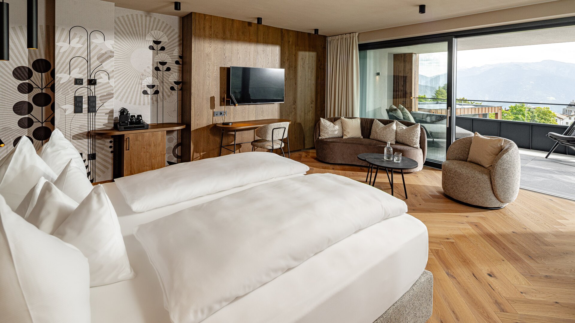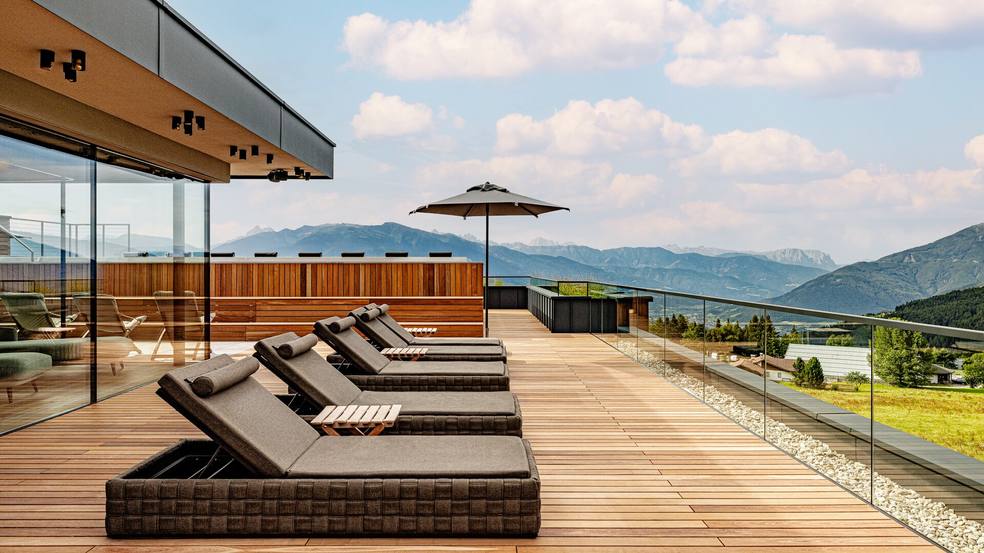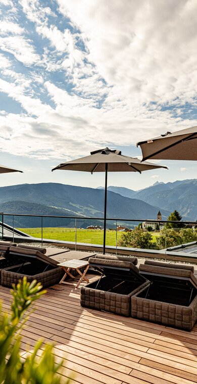 Das SONNENBERG****s Panorama Dolomites Wellbeing liegt auf dem sonnigen Hochplateau Meransen.