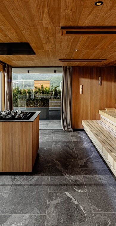 Pure Ruhe und gedämpftes Licht umhüllt Sie in der Sky Sauna mit Panoramablick. Wertvolle Naturdüfte regen an – oder beruhigen. Die Saunaaufgüsse sind so vielfältig wie ihre Namen: Freier Atem, Rock ’n’ Sweat, Hiatermadl, Die Kraft der Natur.