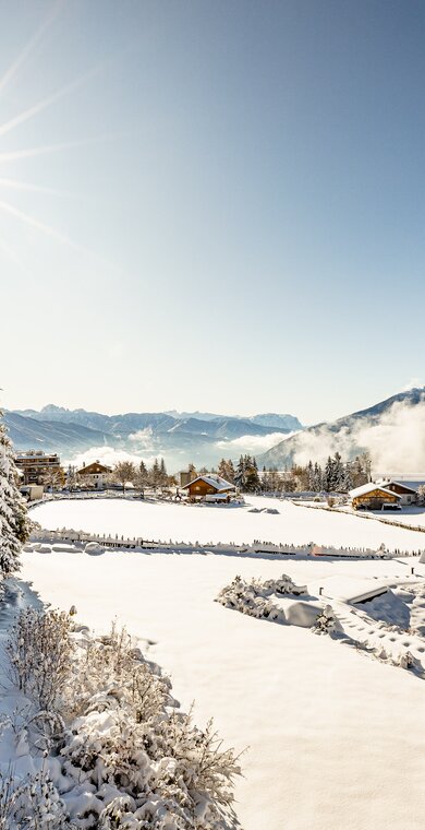 Das SONNENBERG****s Panorama Dolomites Wellbeing liegt auf dem sonnigen Hochplateau Meransen.