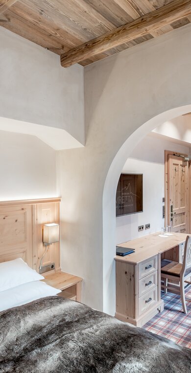Die Zimmer und Suiten des Hotels vereinen erstklassigen Luxus mit dem authentischen Charme der Alpen und kreieren eine unvergleichliche Atmosphäre des Wohlbefindens. Ob in einem traditionellen, klassischen oder modernen Ambiente – höchster Komfort und großzügig gestaltete Räumlichkeiten sind stets gewährleistet. Die Suiten sind mit gut ausgestatteten Küchenzeilen zur Selbstversorgung versehen, auf Wunsch können jedoch verschiedene Verwöhnleistungen gebucht werden.